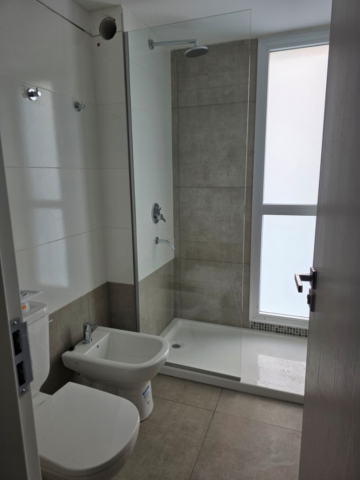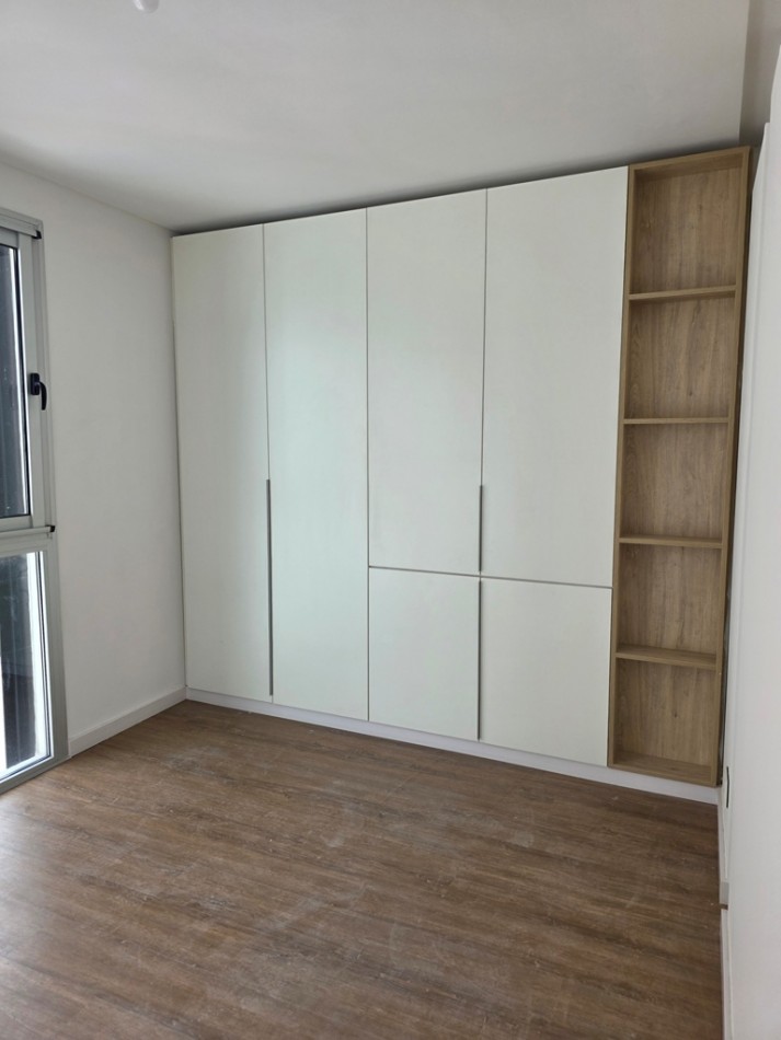 El dormitorio principal incluye un amplio placard empotrado que optimiza el espacio de almacenamiento, mientras que el ante y baño completo está equipado con acabados de calidad, piso de porcelanato, grifería de FV, con mampara.