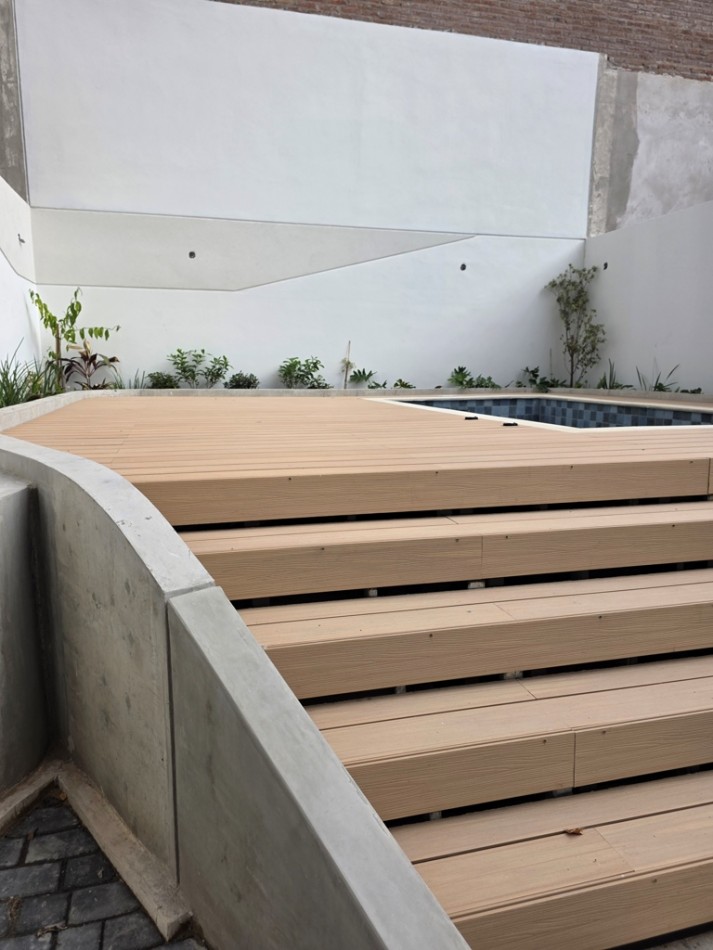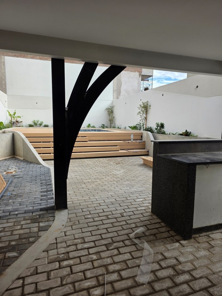 Las aberturas son de aluminio anodizado con vidrio DVH, los pisos de porcelanato