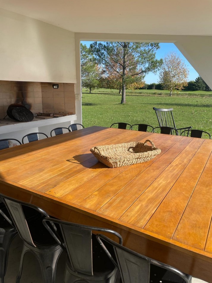 P.Baja: está diseñada para la vida social con un amplio living - comedor con la cocina semi incorporada, separa por barra desayunadora, toilette y lavadero, además de una espectacular galería con parrillero y jardín con vista a la cancha de Golf.