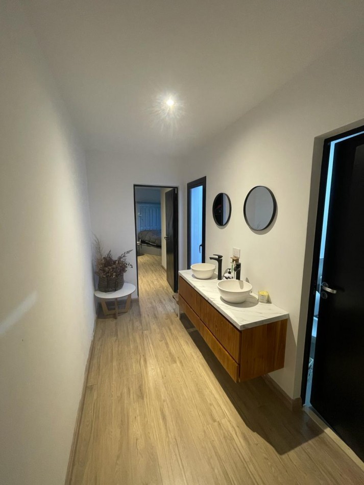 P. Alta con dormitorio en suite, 2 dormitorios con placard y baño completo. Cochera para 2 autos.